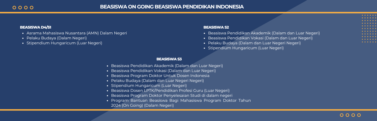 Untuk mendukung Dosen di Indonesia agar dapat melanjutkan pendidikan formal ke jenjang pendidikan tinggi serta untuk mengoptimalkan pengelolaan anggaran pendapatan dan belanja negara, Kementerian Pendidikan Tinggi, Sains, Dan Teknologi melalui Sekretaris Jenderal Kementerian Pendidikan Tinggi, Sains, dan Teknologi menyelenggarakan Beasiswa Program Doktor Untuk Dosen Indonesia. Beasiswa ini dapat diakses oleh Dosen pada perguruan tinggi dibawah koordinasi Kemdiktisaintek untuk dapat melanjutkan studi ke jenjang Doktoral di Perguruan Tinggi Terbaik di Dalam Negeri dan memungkinkan untuk menempuh skema joint degree atau double degree.